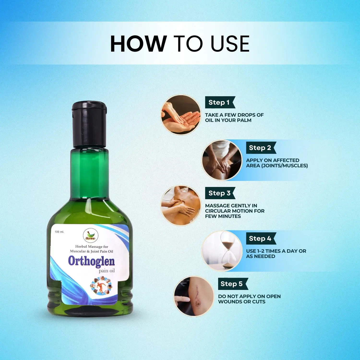 Application of Orthoglen Ayurvedic Oil